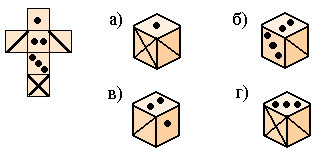 Задача 7. Выберите кубик (см. Рисунок 2), соответствующий развёртке (см. Рисунок 1).